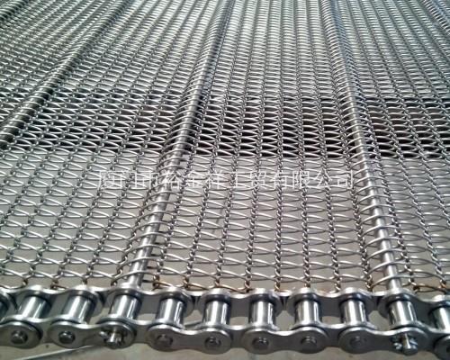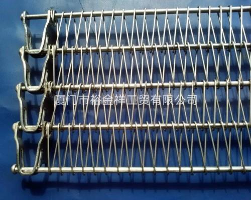 螺旋网带通常应用于速冻食品行业,是速冻机必不可少的配件之一,它不同于普通编织成的金属网带,这种网带是由丝径较粗的不锈钢直条,U型链条以及不锈钢小帽组合而成。